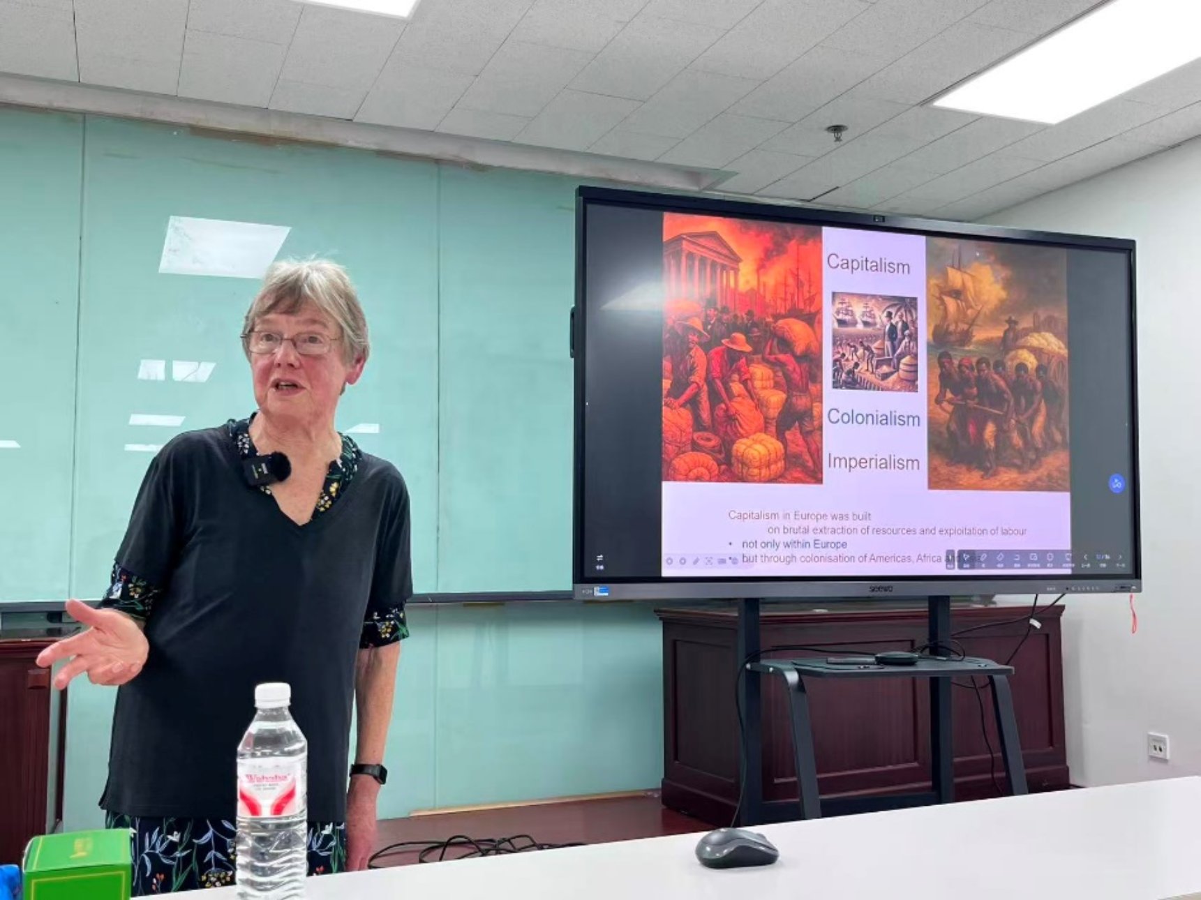 在首场讲座中,Sheehan教授以“马克思主义与现代性”(Marxism and Modernity)为主题,系统梳理了从中世纪到现代的知识演进、社会政治变革以及经济技术的发展历程。她详细分析了理性主义与经验主义的发展脉络,阐释了马克思主义对二者所实现的更高层次综合,并指出资本主义在推动现代化的同时,亦存在严重的剥削与分配矛盾。此外,她还结合中苏两国的社会主义实践,肯定了中国式现代化道路的重要意义。