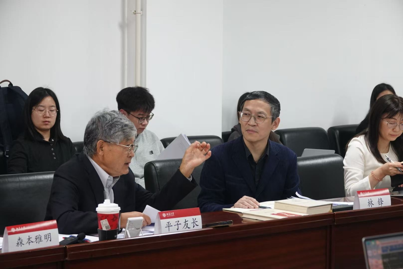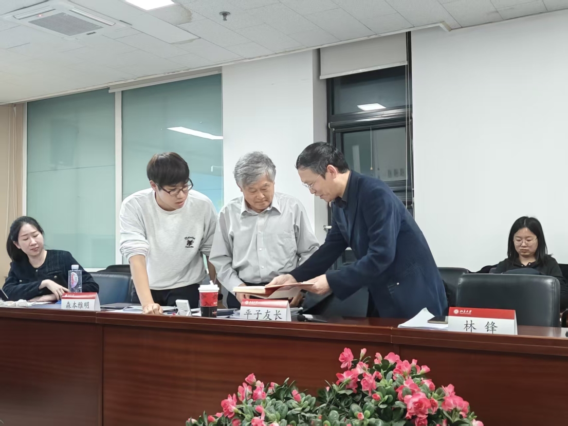 在对谈环节,林锋教授与平子友长教授就马克思异化概念的界定、异化与物象化-物化是否构成循环论证、如何理解“物的人格化”的理论价值以及异化劳动四个规定之间的关系等问题进行了深入且有价值的讨论。在学生提问环节,同学就“物的人格化”如何构成异化的环节、《1844年经济学哲学手稿》和《资本论》中从资本推导出资本家的逻辑是否相似等问题与平子友长教授进行了交流。最后,林锋教授向平子友长教授赠送书籍。