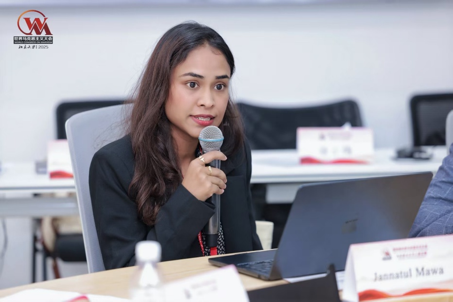 北京航空航天大学马克思主义学院副教授刘娜娜围绕中国青年学面向全球南方发言立说的主题指出,中国学者要面向西方、面相全球南方发出自己的声音,国际左翼期刊也很期待中国学者的声音。《全球公共评论》助理编辑Jannatul Mawa聚焦生态马克思主义,围绕三个核心问题:一是生态马克思主义如何应用到环境抗争中;二是大学在多大程度上融入了生态马克思主义框架;三是哪些因素在阻碍批判性实践,探讨它如何结合生物教育学与批判教育学,影响社会环境正义。
